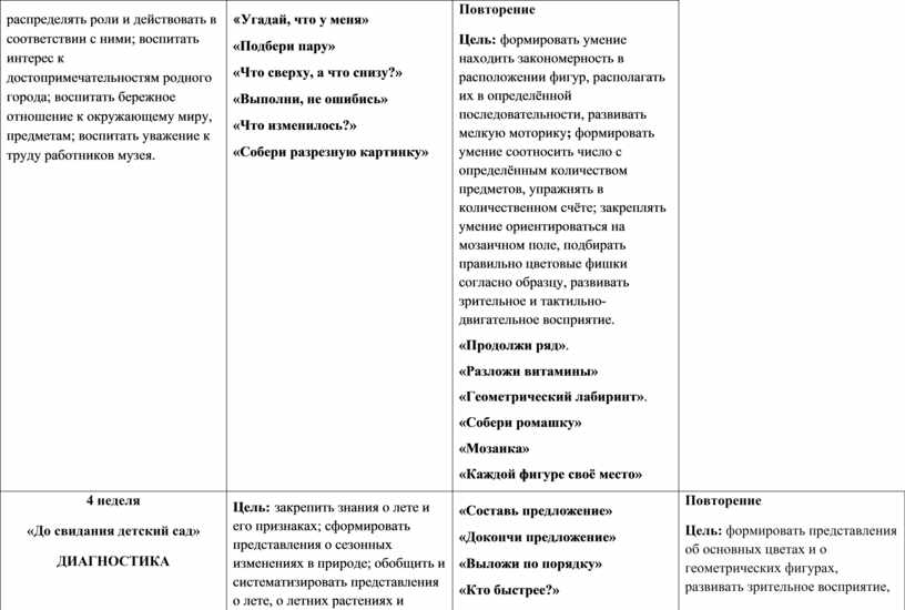 4 неделя «До свидания детский сад» ДИАГНОСТИКА |