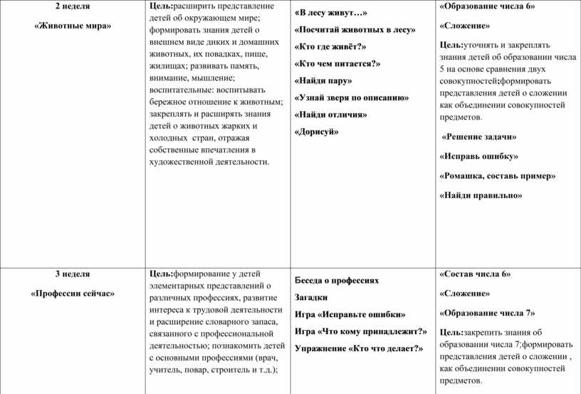 Цель: систематизировать знания детей о природе. Задачи включают формирование понимания того, что планета Земля — общий дом, в котором живут звери, птицы, рыбы, насекомые, а человек — часть природы. Также занятия помогают закреплять представления о насекомых, цветах, деревьях, правилах поведения в природе. |