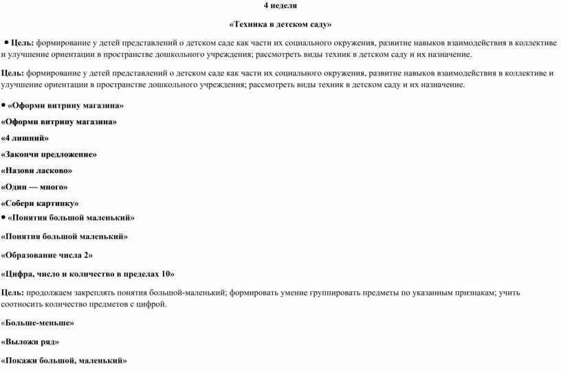 4 неделя «Техника в детском саду»