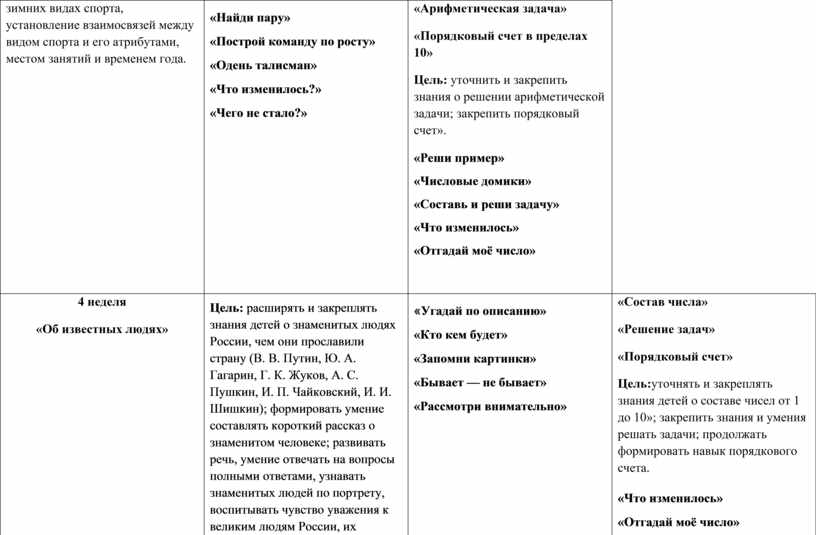 «Мы создаём мир» «Общим словом назови и напомни» «Угадай, что у меня» «Выполни, не ошибись» «Что изменилось?» «Природа и человек»