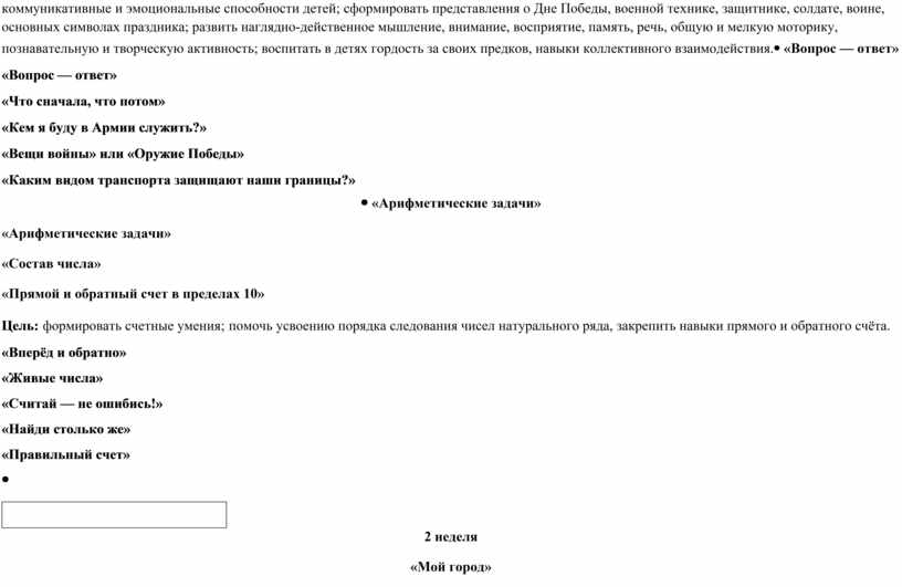 «Вопрос — ответ» «Что сначала, что потом» «Кем я буду в Армии служить?» «Вещи войны» или «Оружие Победы» «Каким видом транспорта защищают наши границы?»