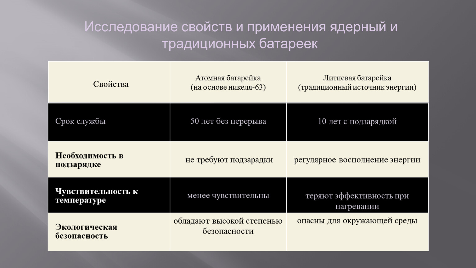 Исследование свойств и применения ядерный и традиционных батареек