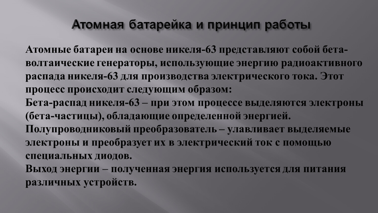 Атомная батарейка и принцип работы