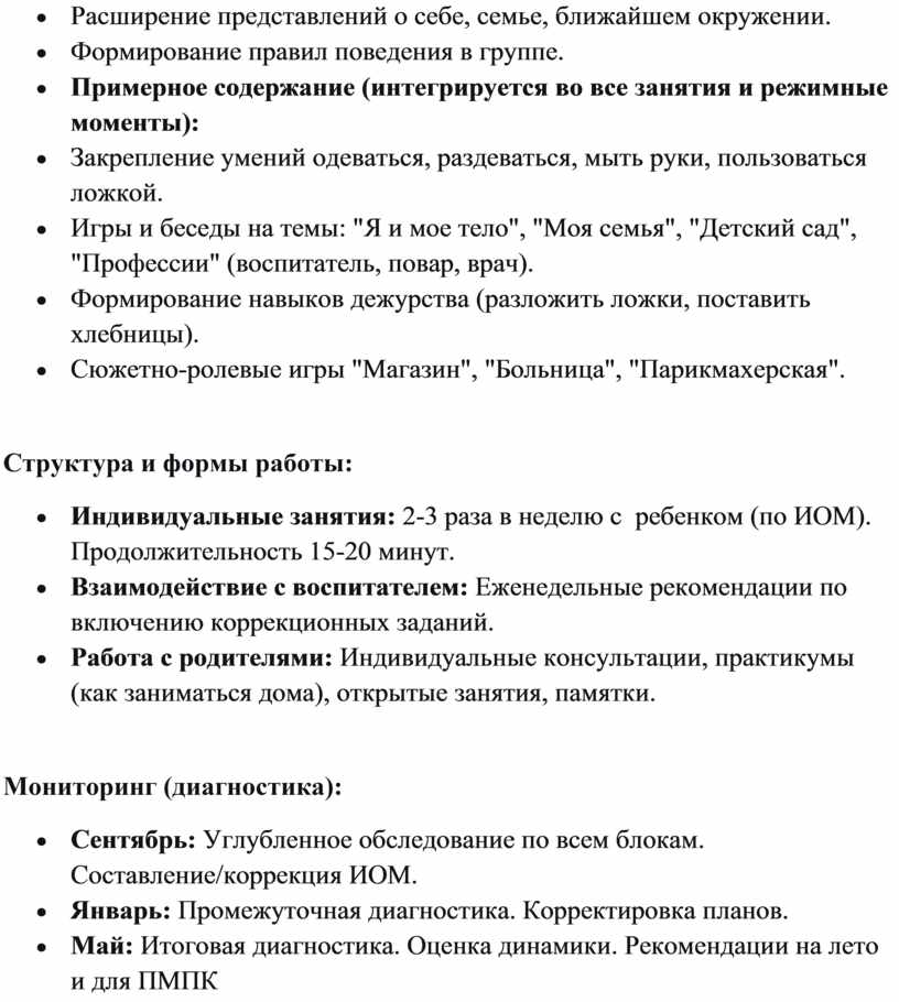 · Сентябрь: Углубленное обследование по всем блокам. Составление/коррекция ИОМ.