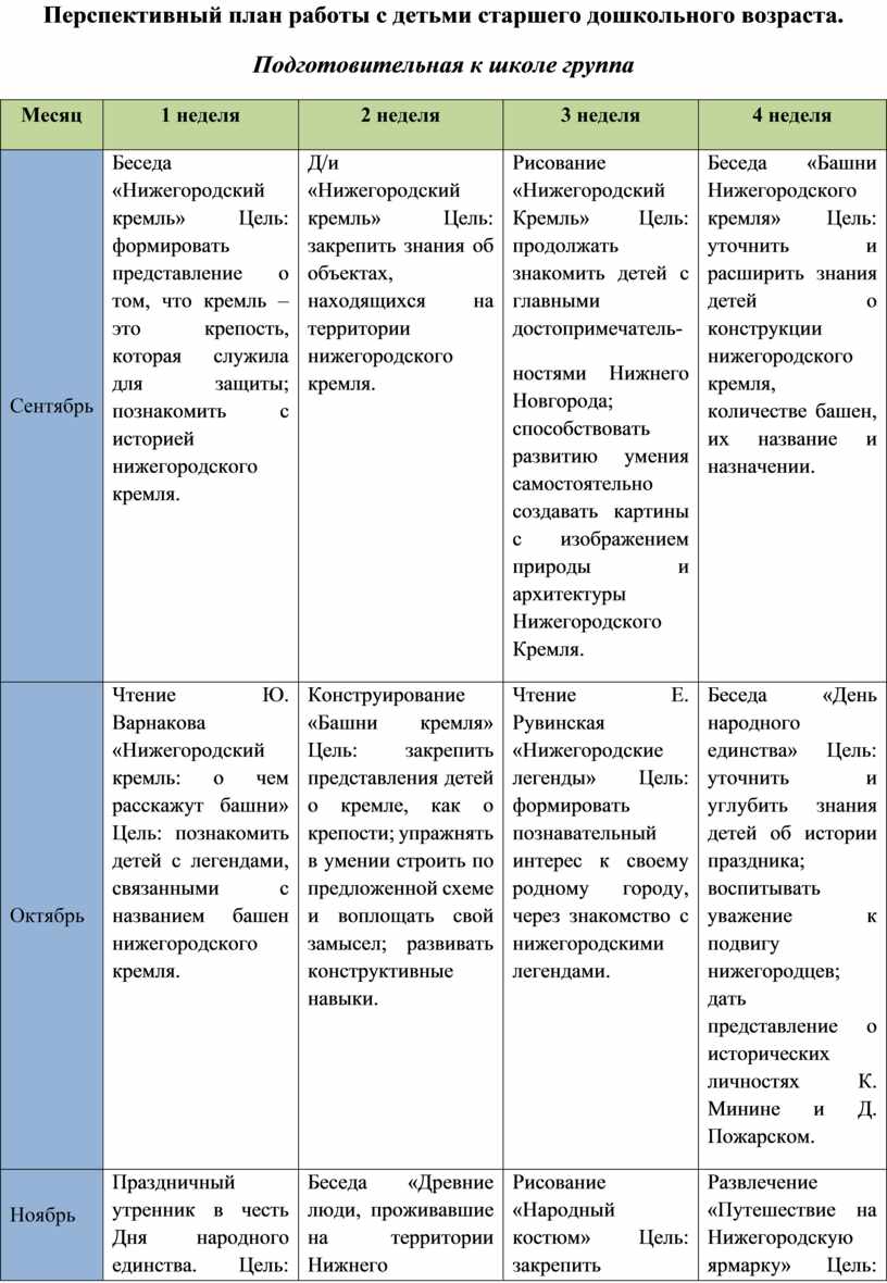 Перспективный план работы с детьми старшего дошкольного возраста.