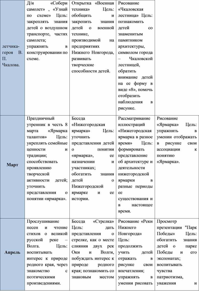 Беседа «Знамениты нижегородцы – В.П. Чкалов» Цель: уточнить и расширить представления детей о воздушном транспорте, профессии летчика, о подвиге в небе летчика-героя В. П. Чкалова. |