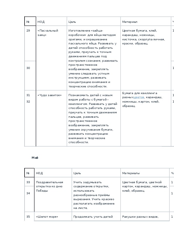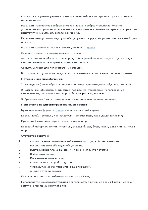 занятия в месяц, 36 занятий в год.Перспективный план работы кружка «Мастерилка»