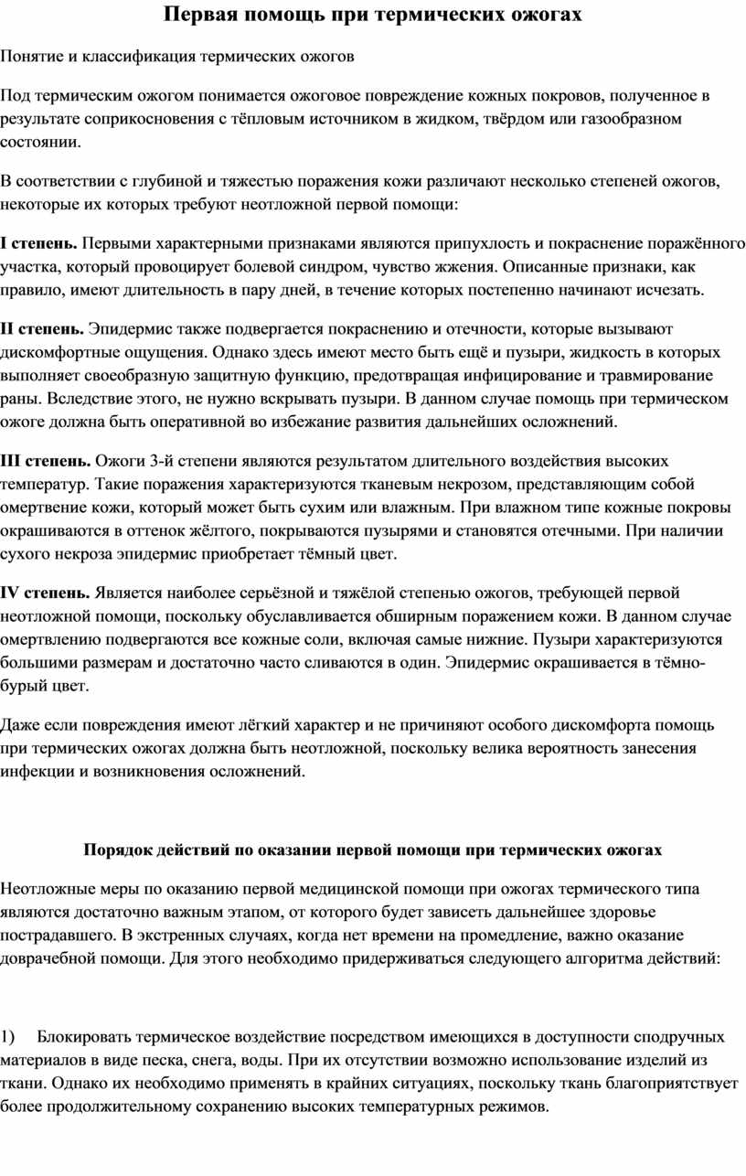 Под термическим ожогом понимается ожоговое повреждение кожных покровов, полученное в результате соприкосновения с тёпловым источником в жидком, твёрдом или газообразном состоянии.