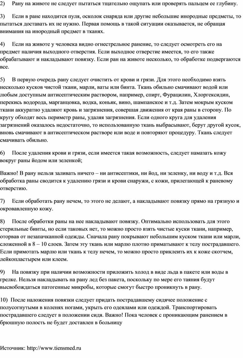 2) Рану на животе не следует пытаться тщательно ощупать или проверять пальцем ее глубину.