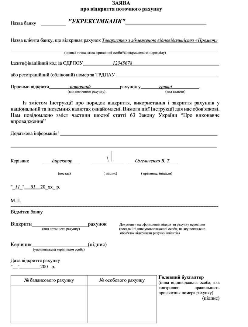 Назва клієнта банку, що відкриває рахунок Товариство з лбмеженою відповідальністю «Промет»