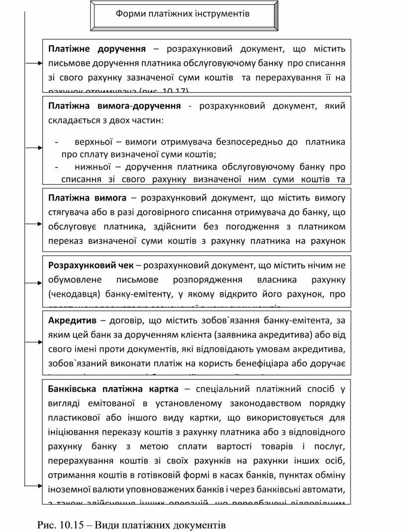Підприємства для здійснення розрахунків з іншими суб’єктами господарювання самостійно обирають необхідні види платіжних інструментів і зазначають їх під час укладання договору (рис. 10.15).