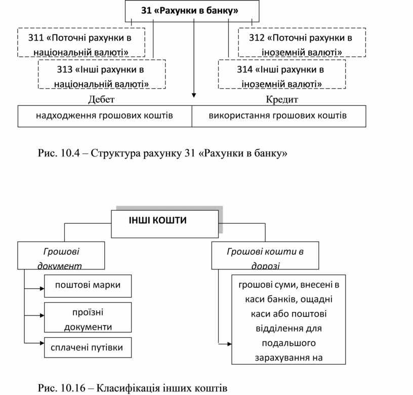 За дебетом рахунку 31 відображається надходження грошових коштів, а за кредитом рахунку 31 – їх використання (рис. 10.14).