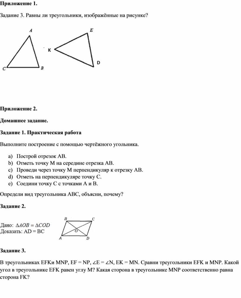 Задание 3. Равны ли треугольники, изображённые на рисунке?