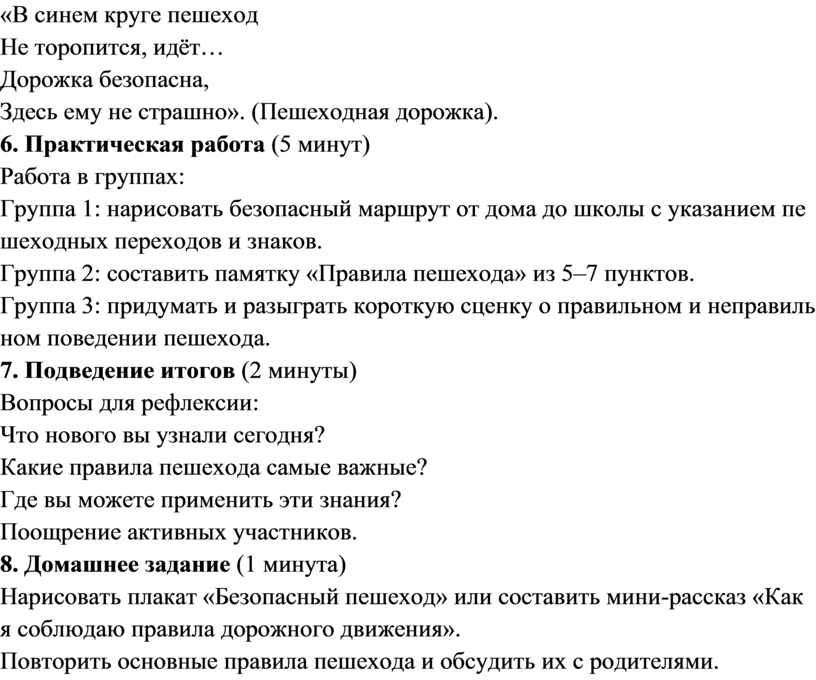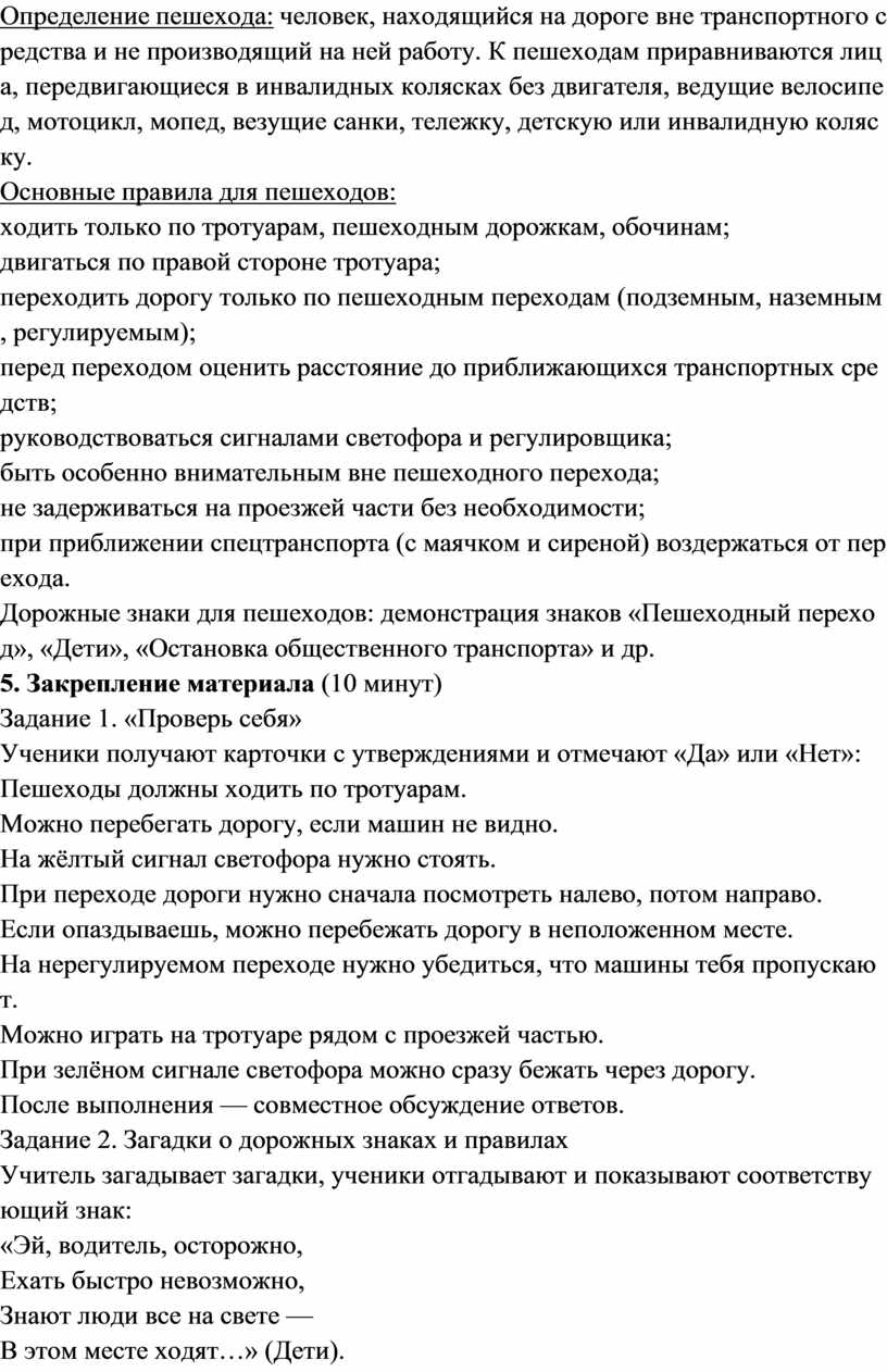 Цель: сформировать у учащихся понимание роли пешехода в дорожном движении и закрепить знания правил безопасного поведения на дорогах.