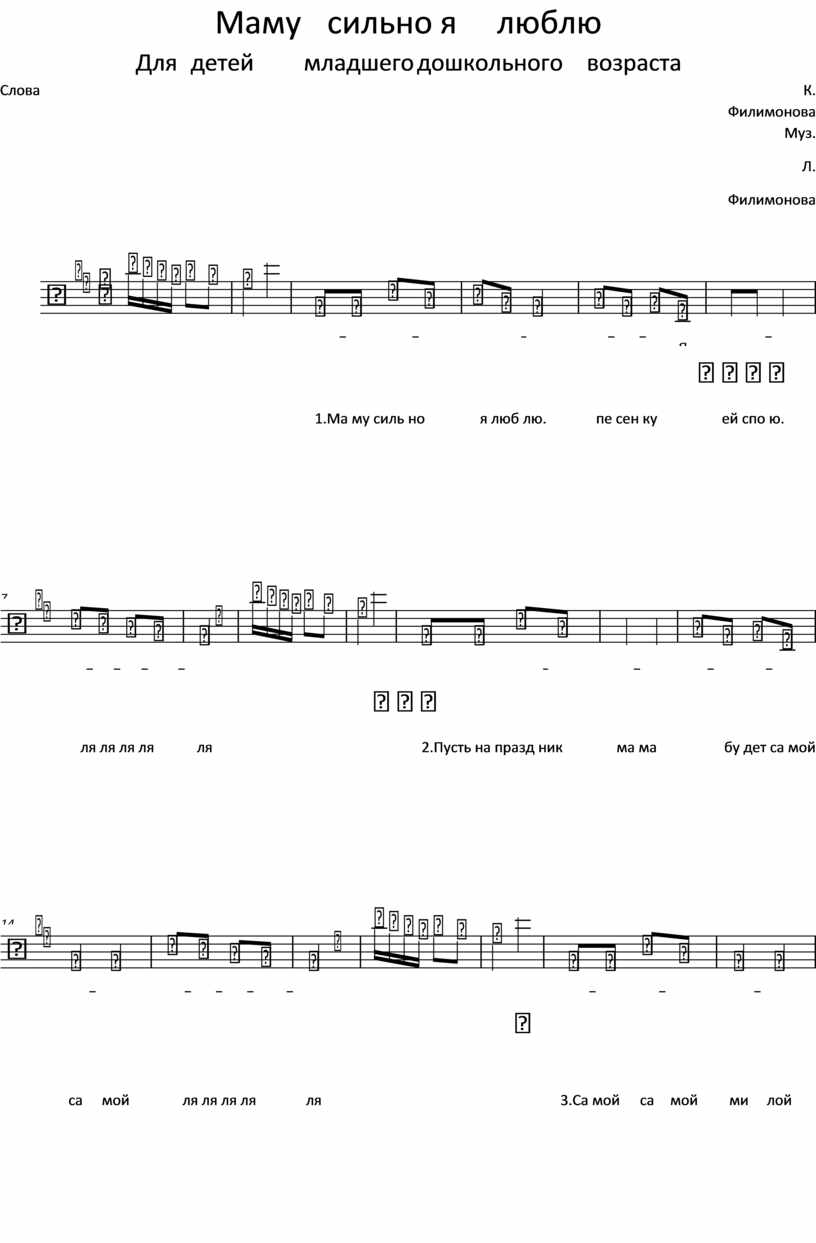 1.Ма му силь но я люб лю. пе сен ку ей спо ю.