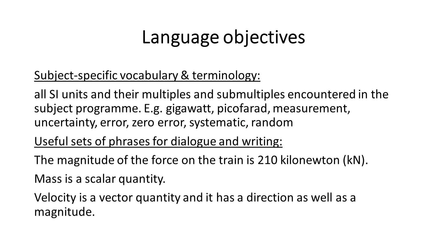 all SI units and their multiples and submultiples encountered in the subject programme. E.g. gigawatt, picofarad, measurement, uncertainty, error, zero error, systematic, random