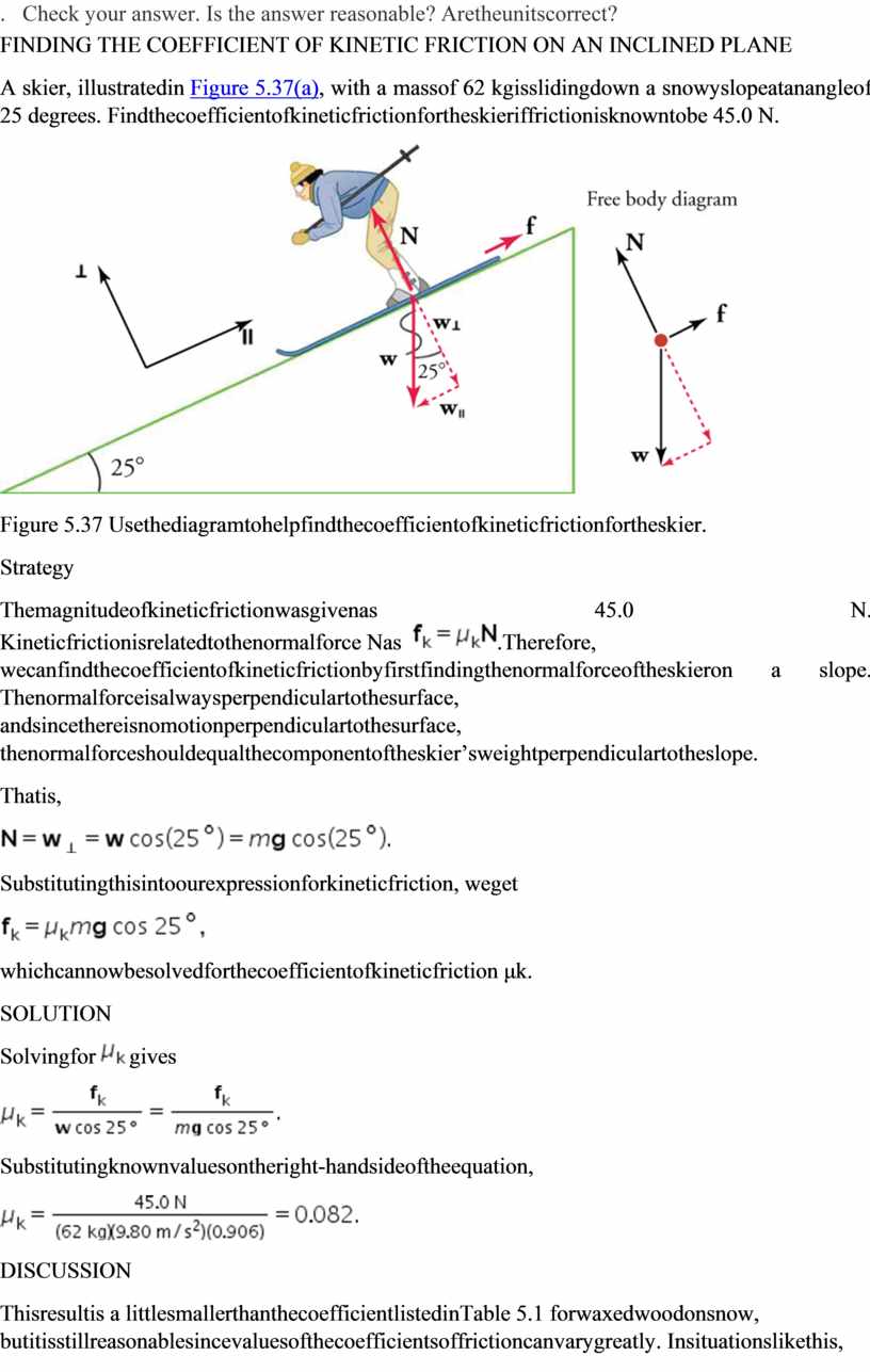 Figure 5.37 Usethediagramtohelpfindthecoefficientofkineticfrictionfortheskier.