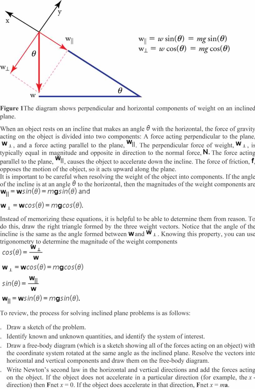 Figure 1The diagram shows perpendicular and horizontal components of weight on an inclined plane.
