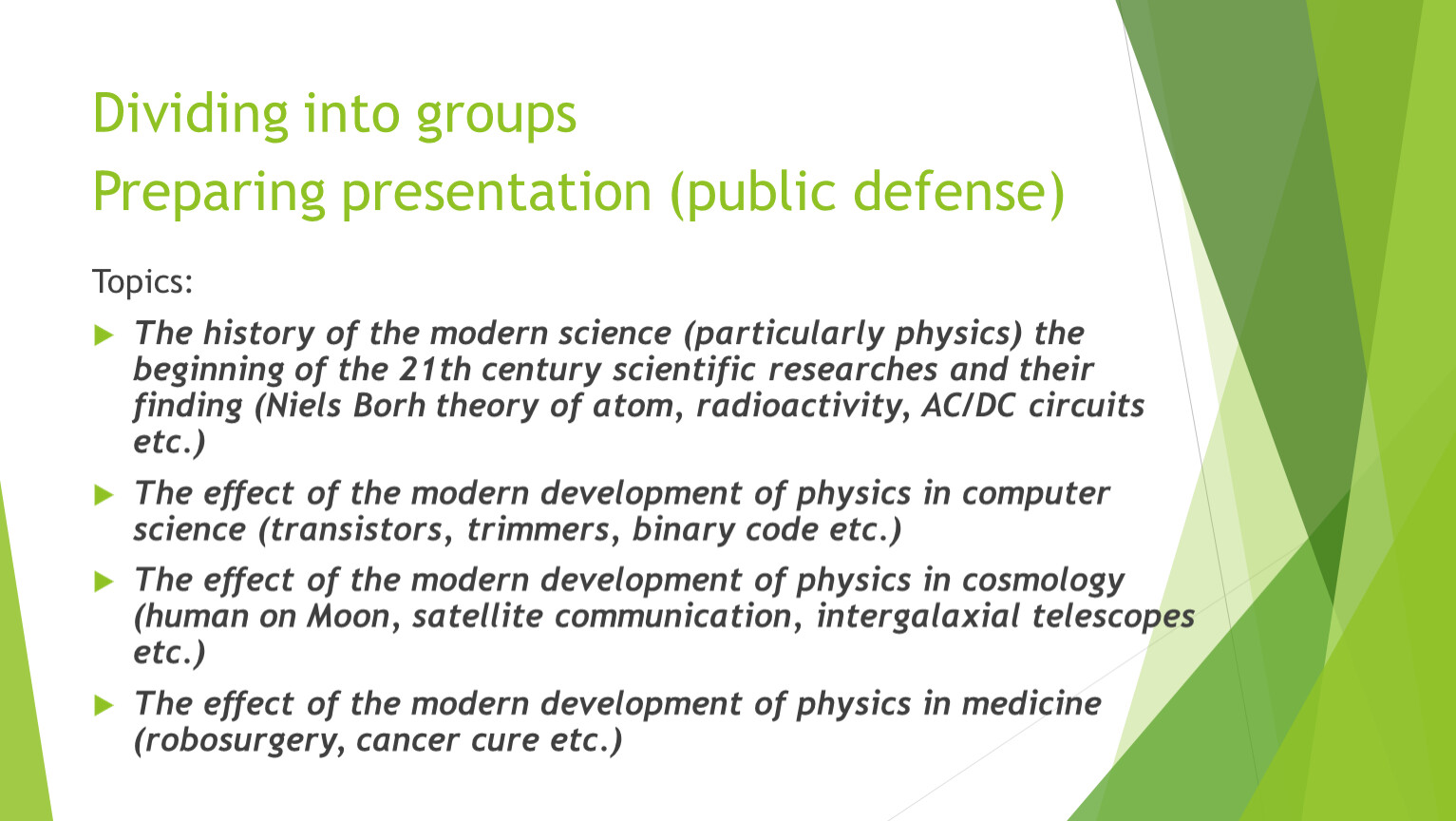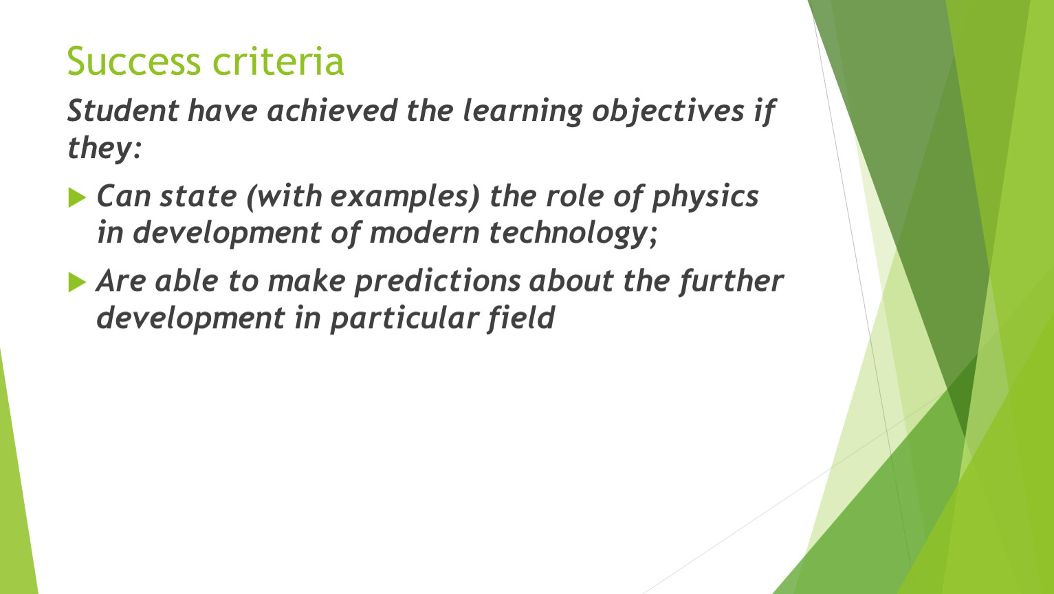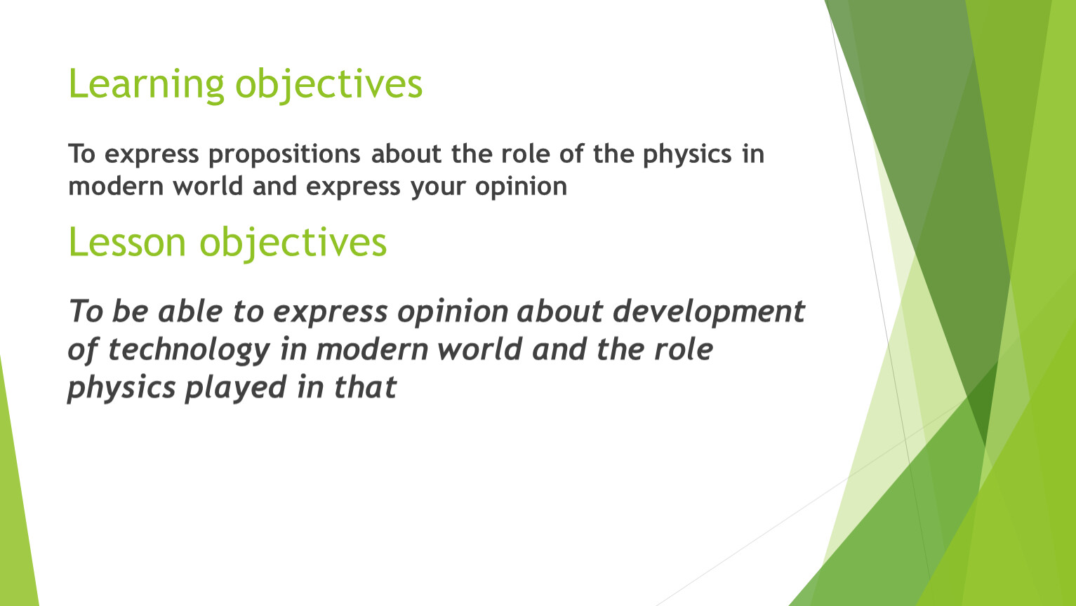 To be able to express opinion about development of technology in modern world and the role physics played in that