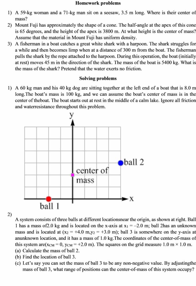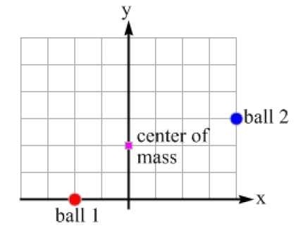(c) Let’s say you can set the mass of ball 3 to be any non-negative value. By adjustingthe mass of ball 3, what range of positions can the center-of-mass of this system occupy?