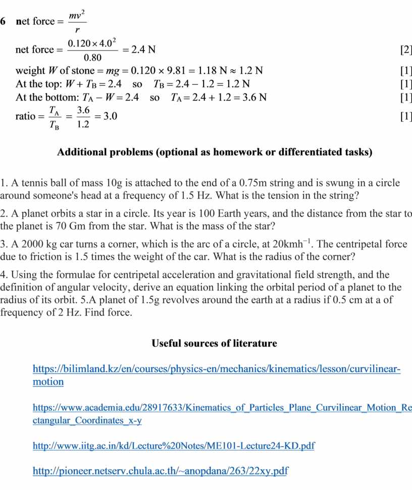4. Using the formulae for centripetal acceleration and gravitational field strength, and the definition of angular velocity, derive an equation linking the orbital period of a planet to the radius of its orbit. 5.A planet of 1.5g revolves around the earth at a radius if 0.5 cm at a of frequency of 2 Hz. Find force.