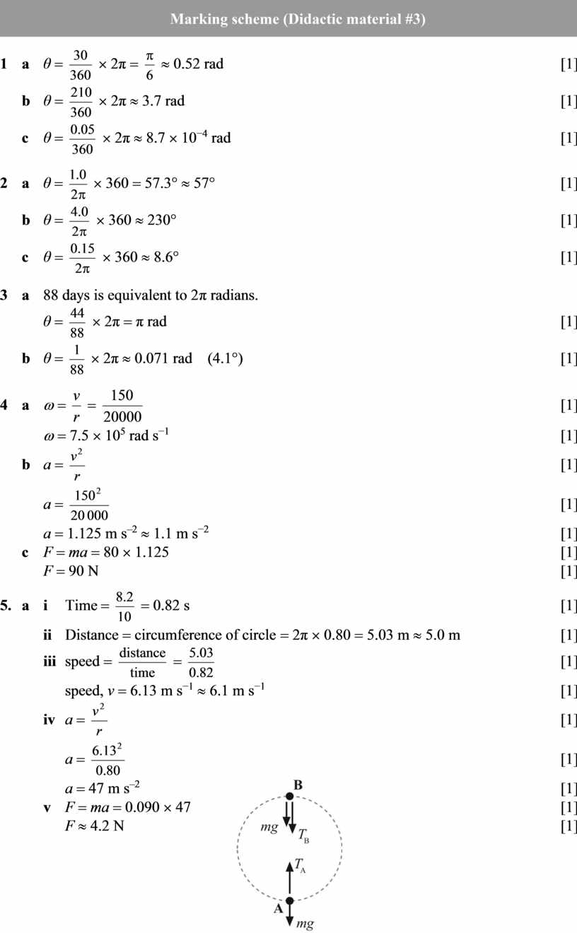 ii Distance = circumference of circle = 2π ´ 0.80 = 5.03 m » 5.0 m [1]
