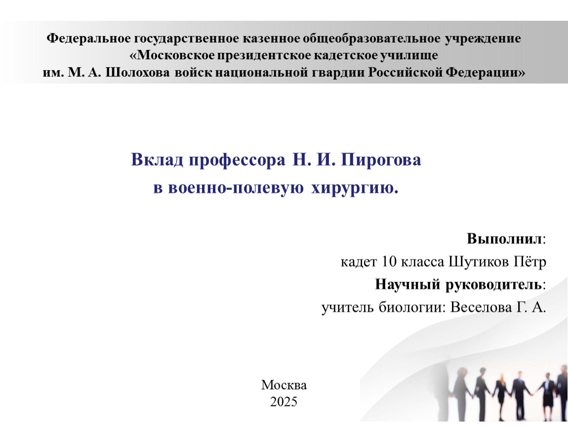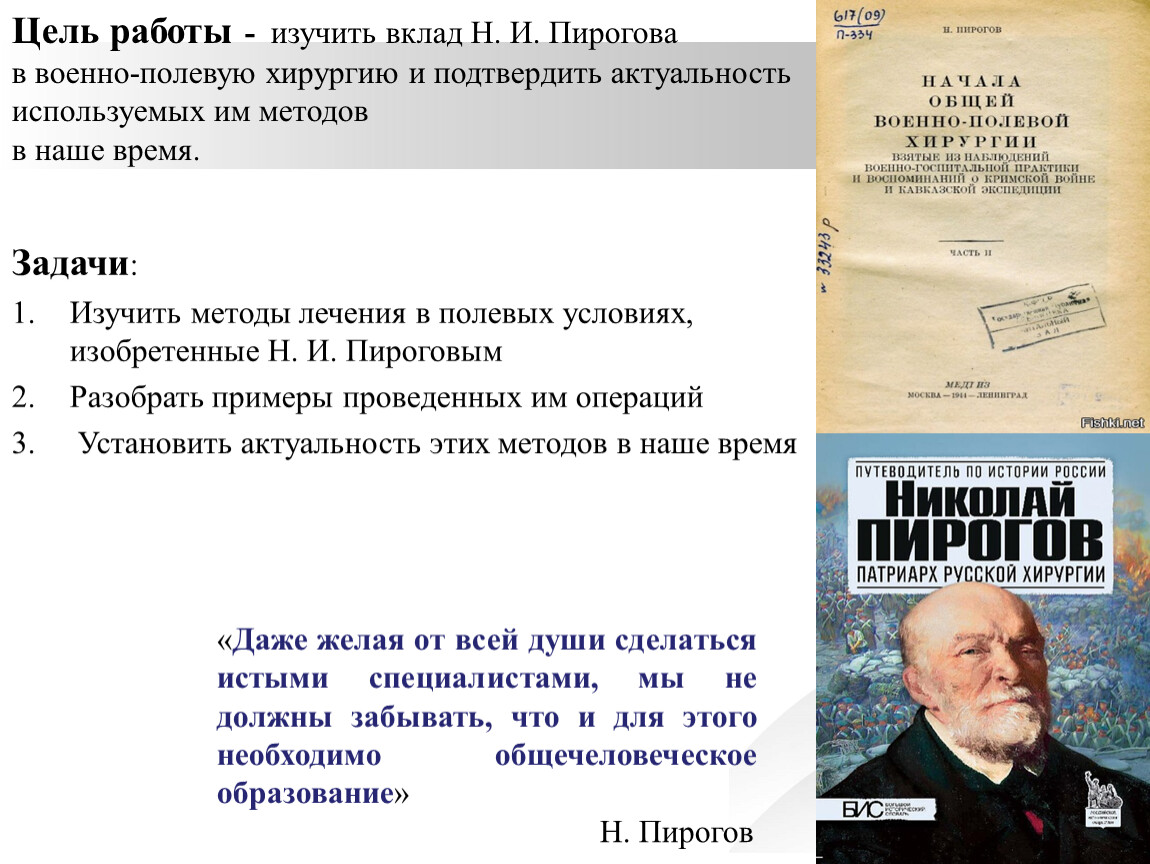 Предмет: труды Н. И. Пирогова как основоположника военно-полевой хирургии.