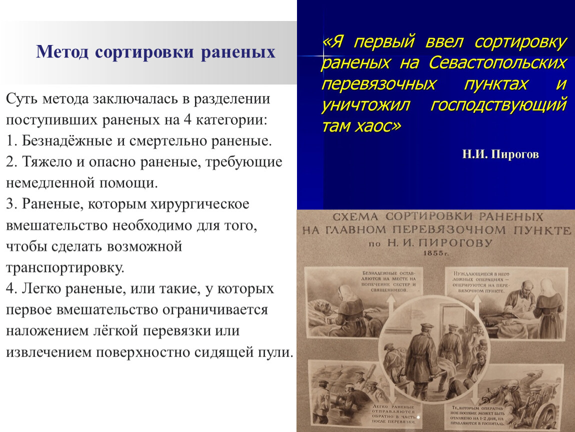 Суть метода заключалась в разделении поступивших раненых на 4 категории: