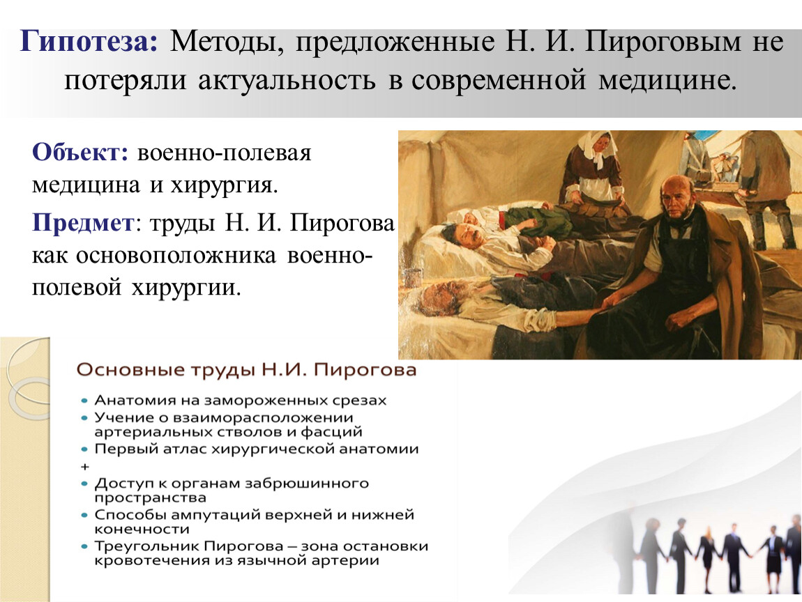 Гипотеза: Методы, предложенные Н. И. Пироговым не потеряли актуальность в современной медицине.