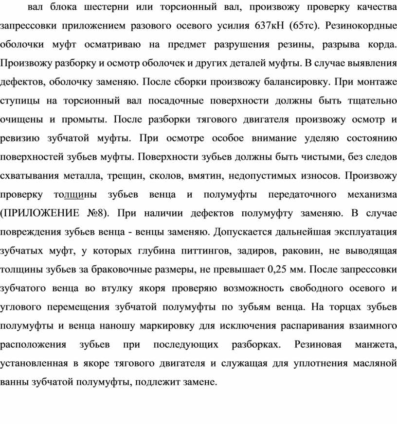 Тяговый привод осматриваю резинокордную муфту (ПРИЛОЖЕНИЕ №6) на