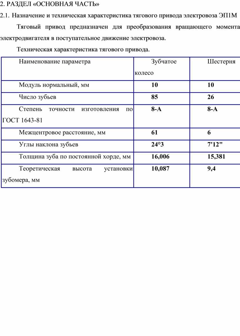 2.1. Назначение и техническая характеристика тягового привода электровоза ЭП1М