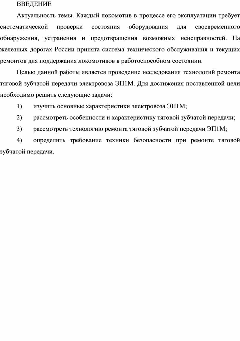 Целью данной работы является проведение исследования технологий ремонта тяговой зубчатой передачи электровоза ЭП1М. Для достижения поставленной цели необходимо решить следующие задачи: