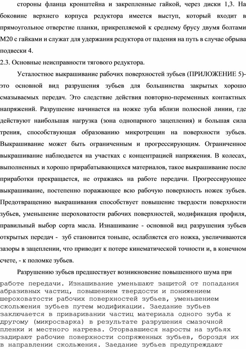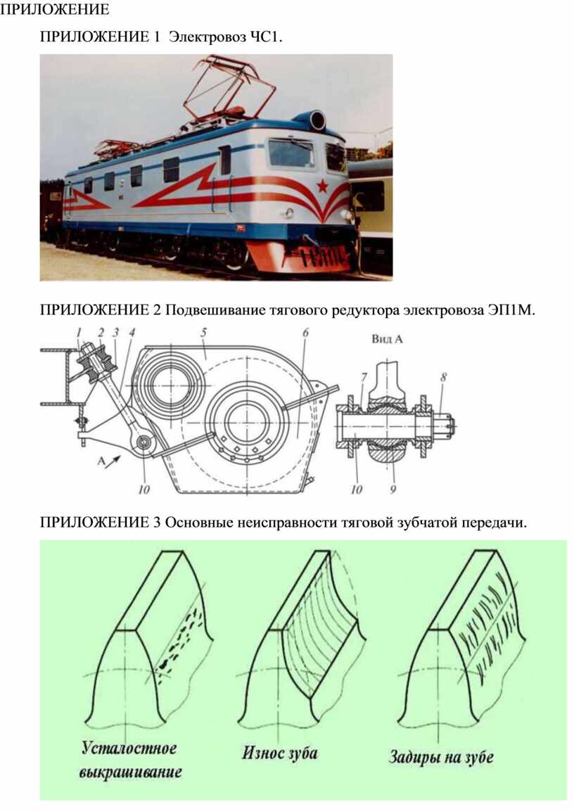 ПРИЛОЖЕНИЕ 3 Основные неисправности тяговой зубчатой передачи.