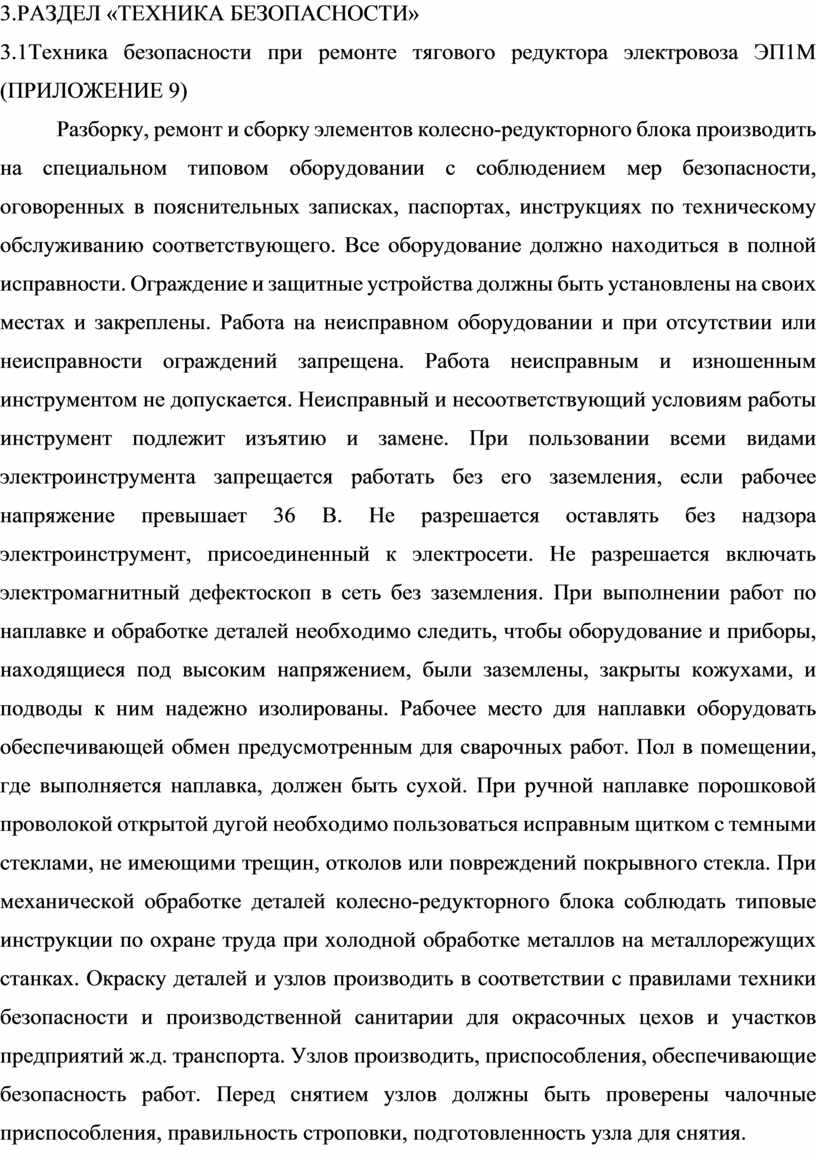 3.1Техника безопасности при ремонте тягового редуктора электровоза ЭП1М (ПРИЛОЖЕНИЕ 9)