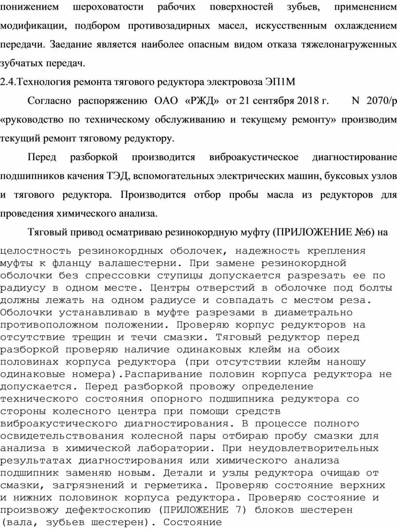 Согласно распоряжению ОАО «РЖД» от 21 сентября 2018 г. N 2070/р «руководство по техническому обслуживанию и текущему ремонту» производим текущий ремонт тяговому редуктору.