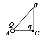 рисунок). В вершине А находится точечный заряд Q. Он действует с
