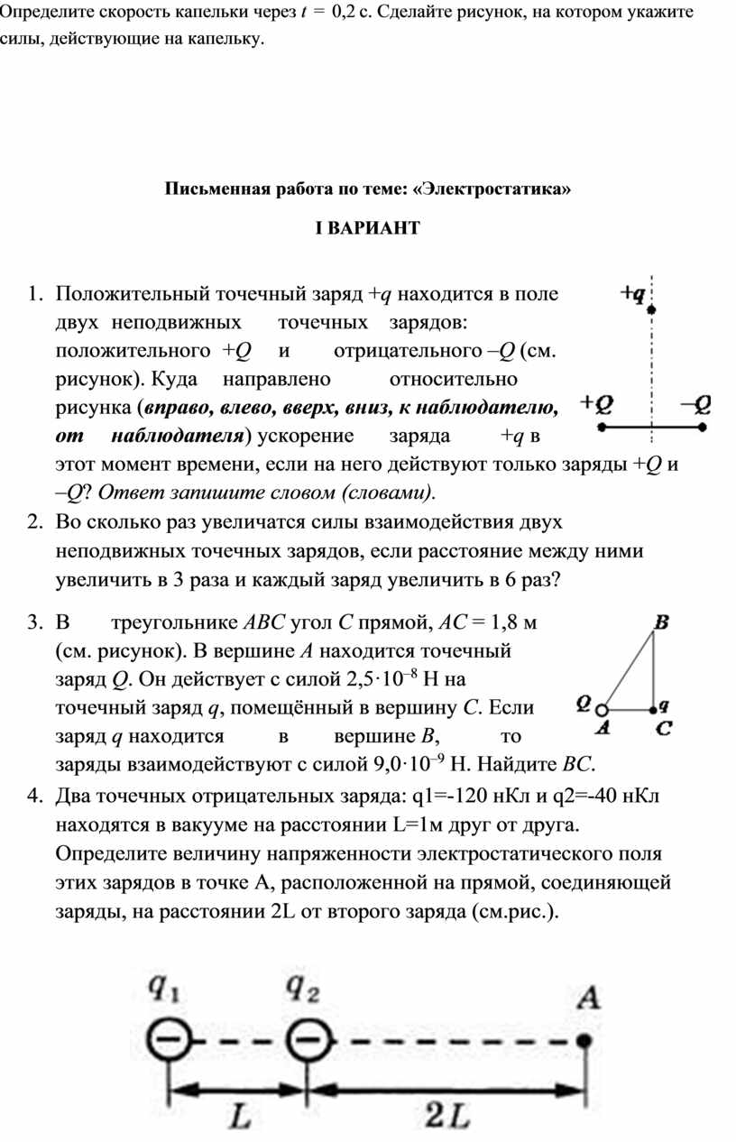 Письменная работа по теме: «Электростатика»