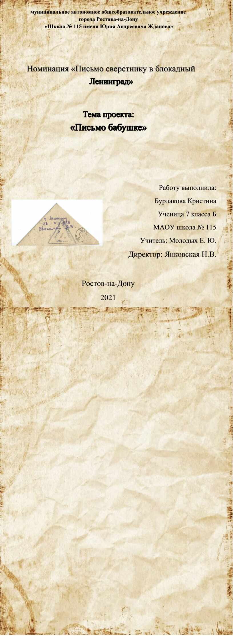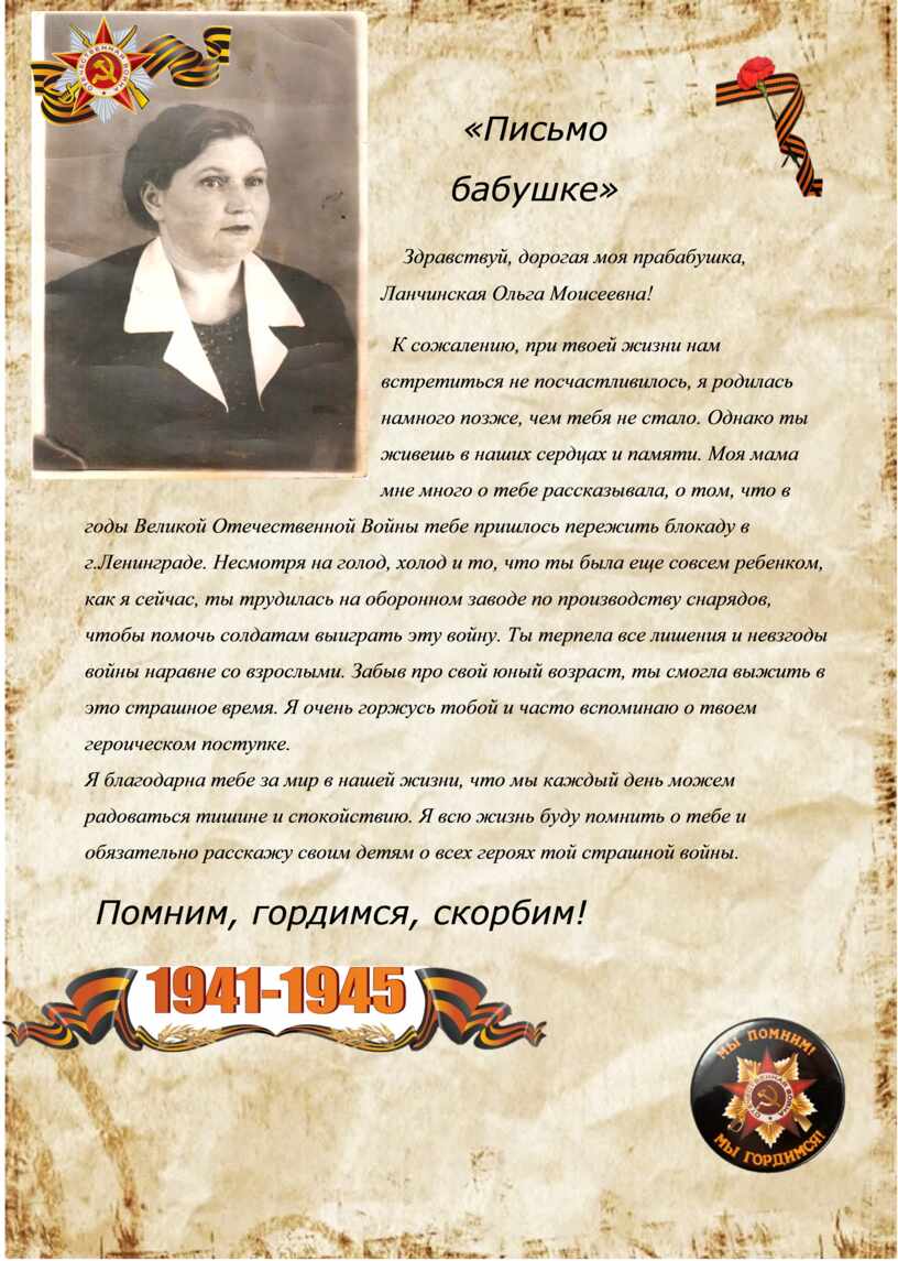 Номинация «Письмо сверстнику в блокадный Ленинград»