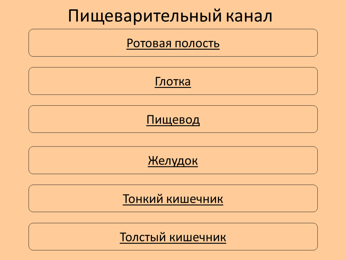 Пищевод – располагается между глоткой и желудком. У человека пищевод — мышечная трубка длиной около 25 см. Сокращаясь рефлекторно, стенки пищевода проталкивают пищевой ком в желудок.