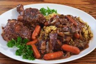 Петух в вине – классическое блюдо французской кухни. В традиционном бургундском рецепте используется целый годовалый петух и красное бургундское вино, причем очень важно во время поедания блюда пить то же вино, что использовалось при приготовлении. Название блюда может меняться в зависимости от названия вина, в котором тушилась курятина, может получится: coqau Chambertin, coqau Romanee-Conti или любой другой coqau. Разумеется, в каждом винодельческом регионе свой рецепт петуха в вине.