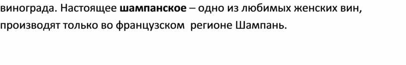 Истинные поклонники вина зачастую предпочитают тонкие французские вина. Франция – страна винодельческих регионов, в каждом из которых выращиваются свои сорта винограда и, соответственно, производится свое вино. Каберне, Мерло, Пино Нуар, Совиньон Блан, Шардоне, Мускат – самые известные сорта вин на основе произрастающего во Франции винограда. Настоящее шампанское – одно из любимых женских вин, производят только во французском регионе Шампань.