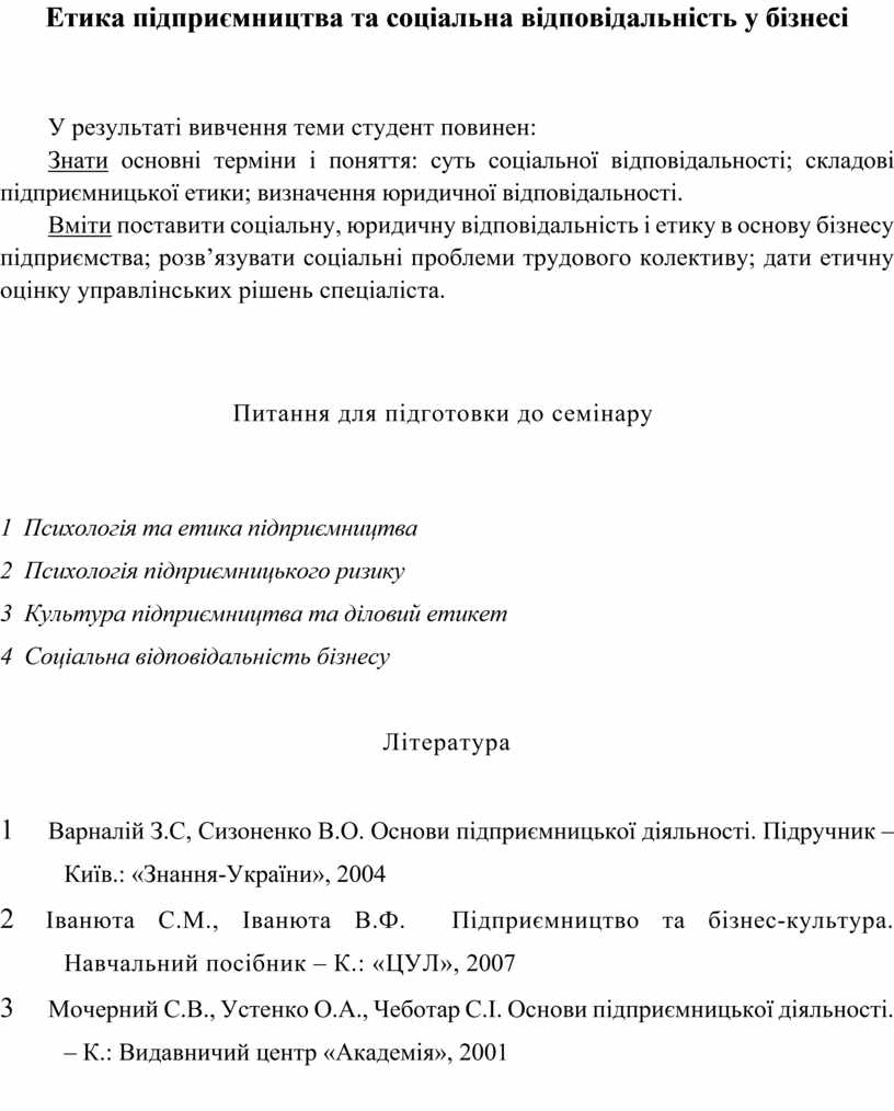 3 Мочерний С.В., Устенко О.А., Чеботар С.І. Основи підприємницької діяльності. – К.: Видавничий центр «Академія», 2001