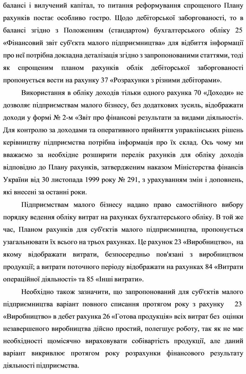 балансі і вилучений капітал, то питання реформування спрощеного Плану рахунків постає особливо гостро. Щодо дебіторської заборгованості, то в балансі згідно з Положенням (стандартом) бухгалтерського обліку 25