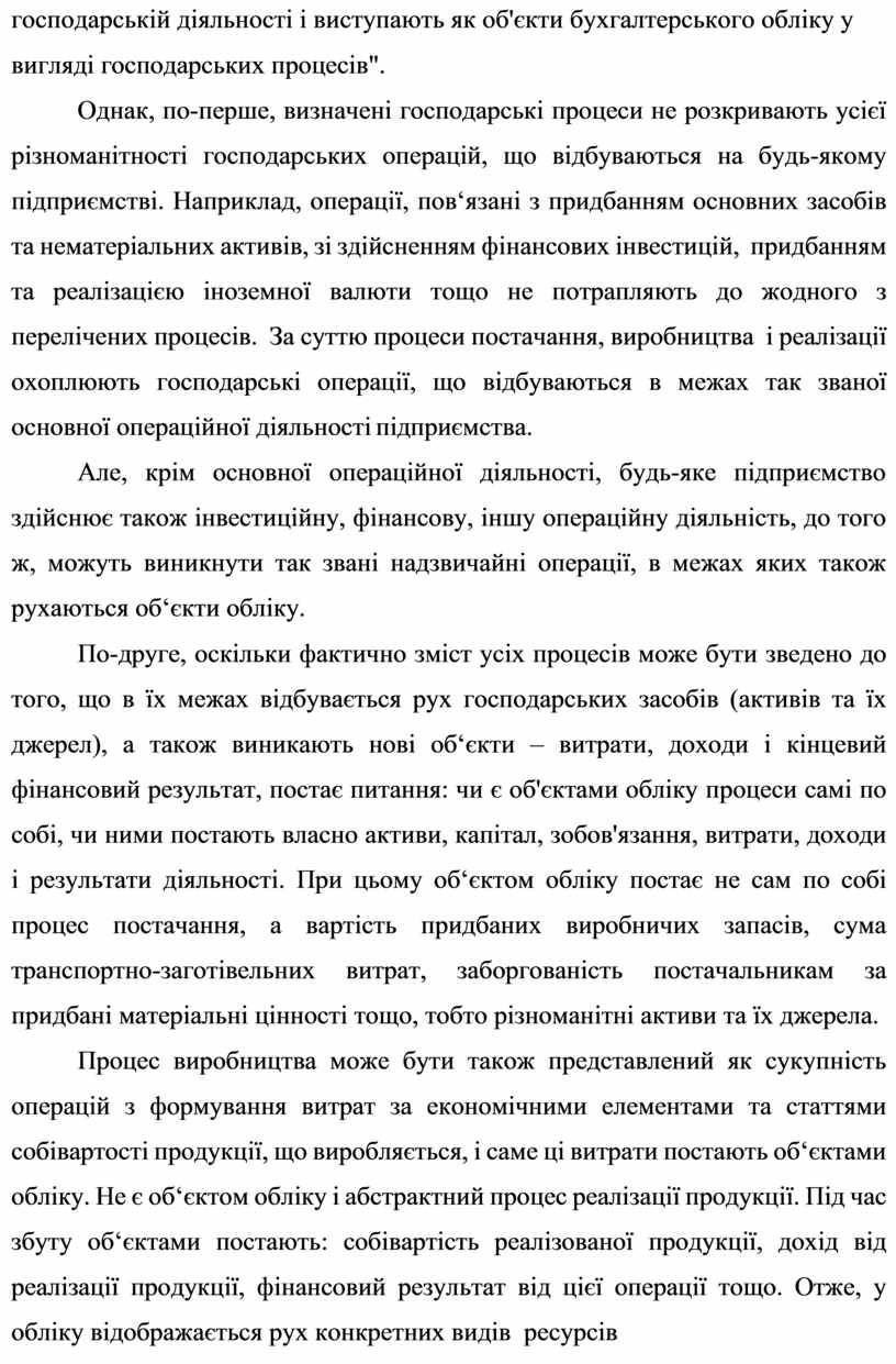 господарській діяльності і виступають як об'єкти бухгалтерського обліку у вигляді господарських процесів".
