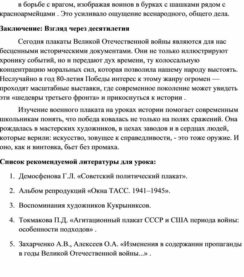 Изучение военного плаката на уроках истории помогает современным школьникам понять, что победа ковалась не только на полях сражений. Она рождалась в мастерских художников, в цехах заводов и в сердцах людей, которые верили: искусство, зовущее к справедливости, - это тоже оружие. И оно, как и винтовка, бьет без промаха.
