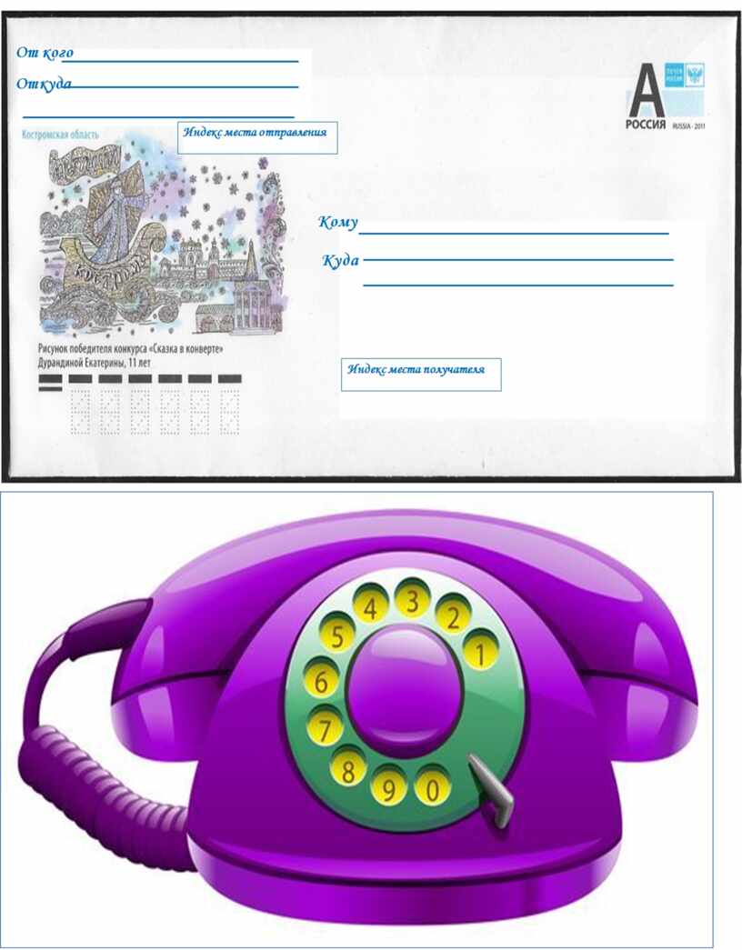 конверт, печать, телефон, компьютер).