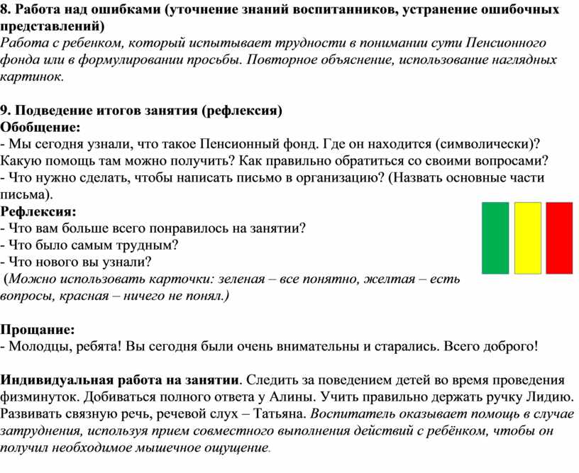 8. Работа над ошибками (уточнение знаний воспитанников, устранение ошибочных представлений)