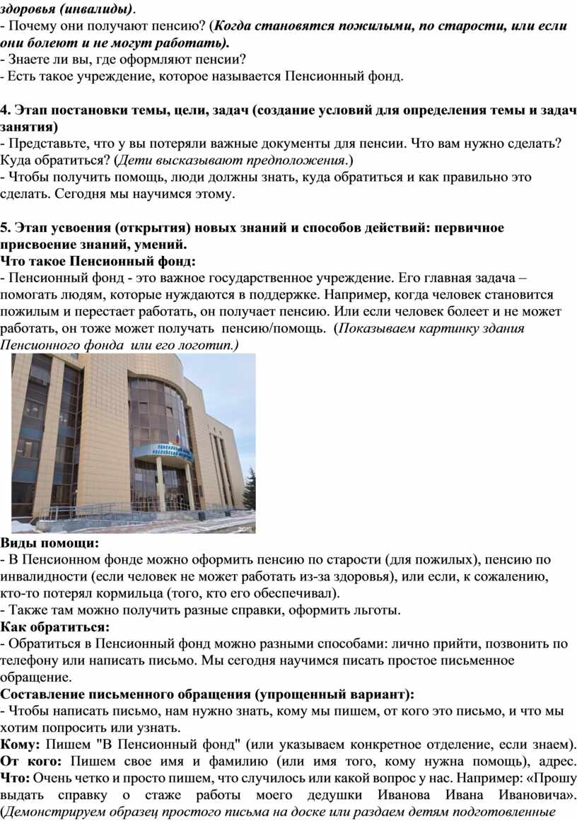 - Знакомить с основными специалистами Пенсионного фонда