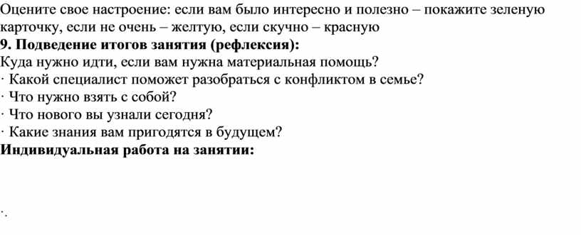 9. Подведение итогов занятия (рефлексия):