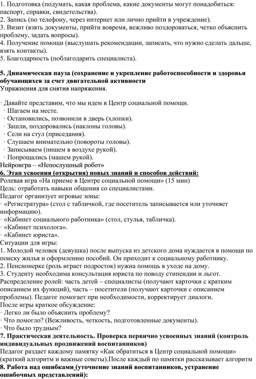 3. Актуализация знаний (припоминание умений, необходимых для текущего занятия - · В любом городе есть специальные организации, которые помогают людям в трудных жизненных ситуациях. Они называются Центры социальной помощи или Управления социальной защиты. Сегодня мы узнаем, как туда обратиться, кто там работает и как получить помощь.